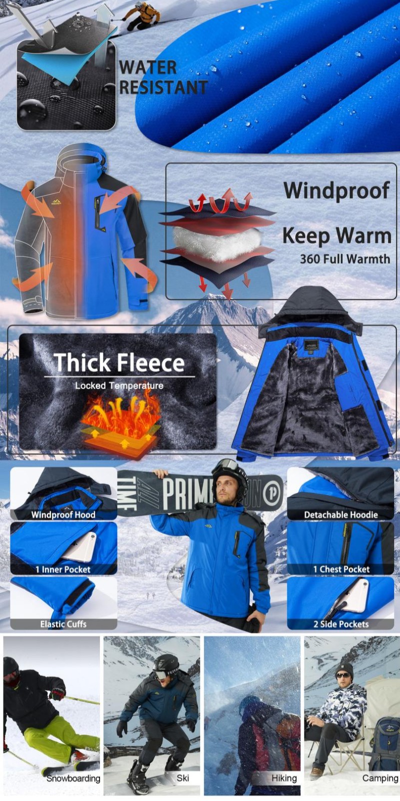 Men's Winter Waterproof Ski Jacket