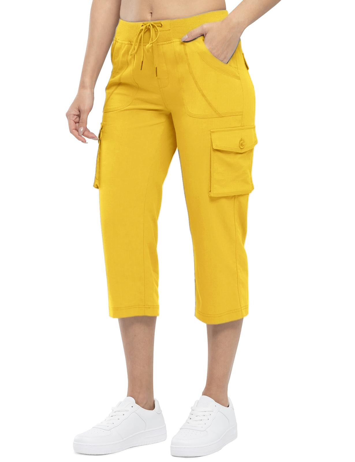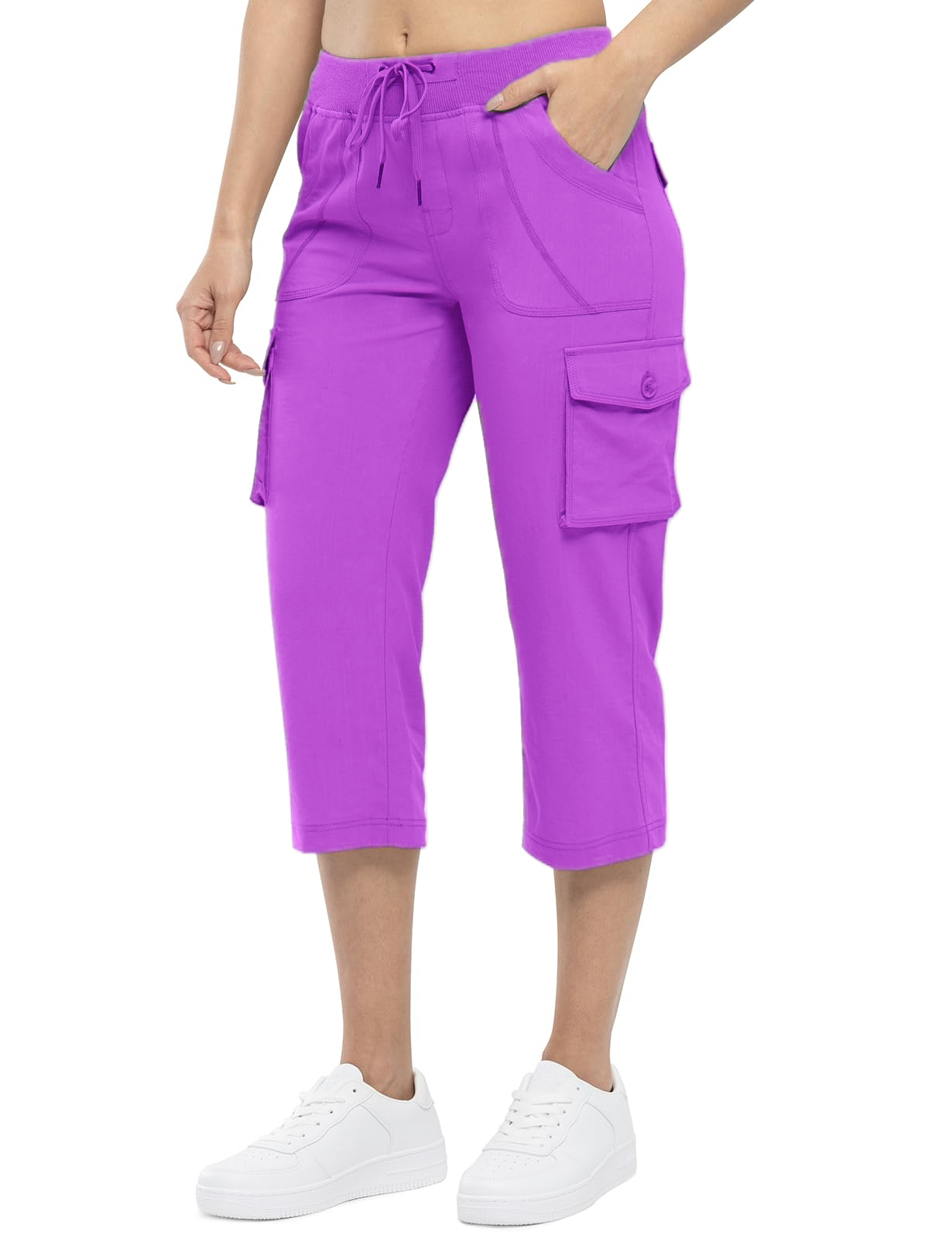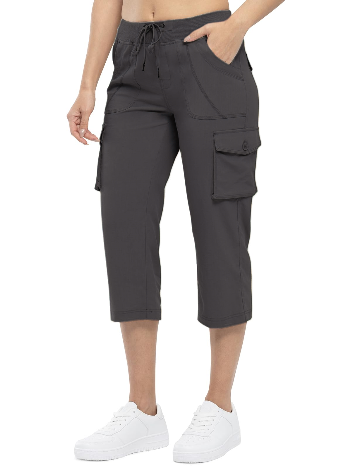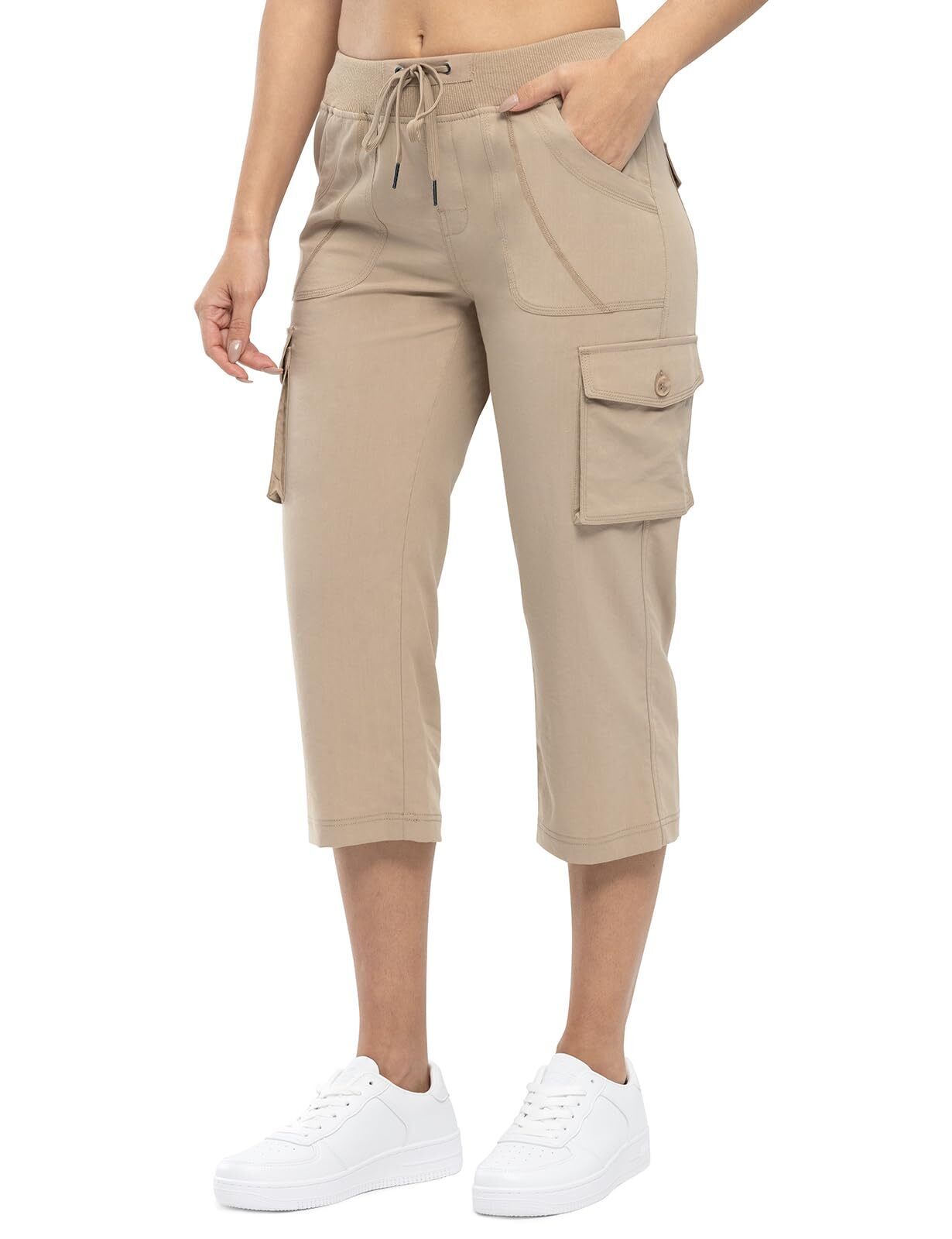 6 functional Pockets: Women's cargo capris pants with 2 side deep pockets, 2 flap cargo pockets and 2 back flap cargo pockets are deep enough stow your on-the-go essentials for extra durability and easy operation.