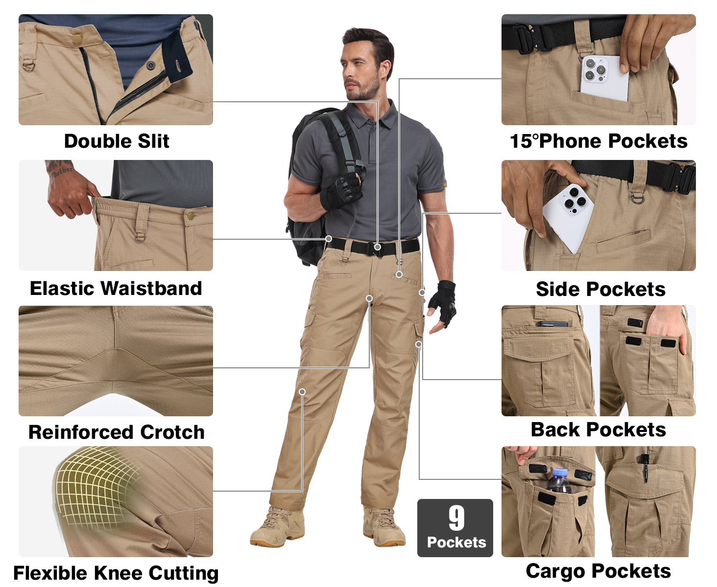 Men's Ripstop Cargo Pants,Ripstop Water-Resistant Hiking Work Pants