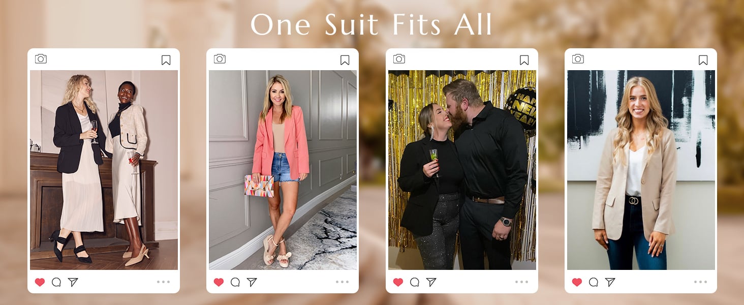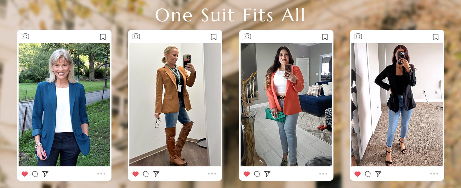 Features: Basic lapel collar blazer jacket for women, a single front button design, two decorative flaps look like pockets for a chic look.(Note: they are fake pockets to make the fit look better)