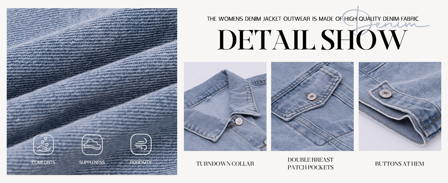 - Classic Denim Fabric: Crafted from comfortable cotton denim that is lightweight, soft, and breathable. Washed for a broken-in feel, it offers a natural vintage hue and soft hand, balancing classic denim style with everyday comfort