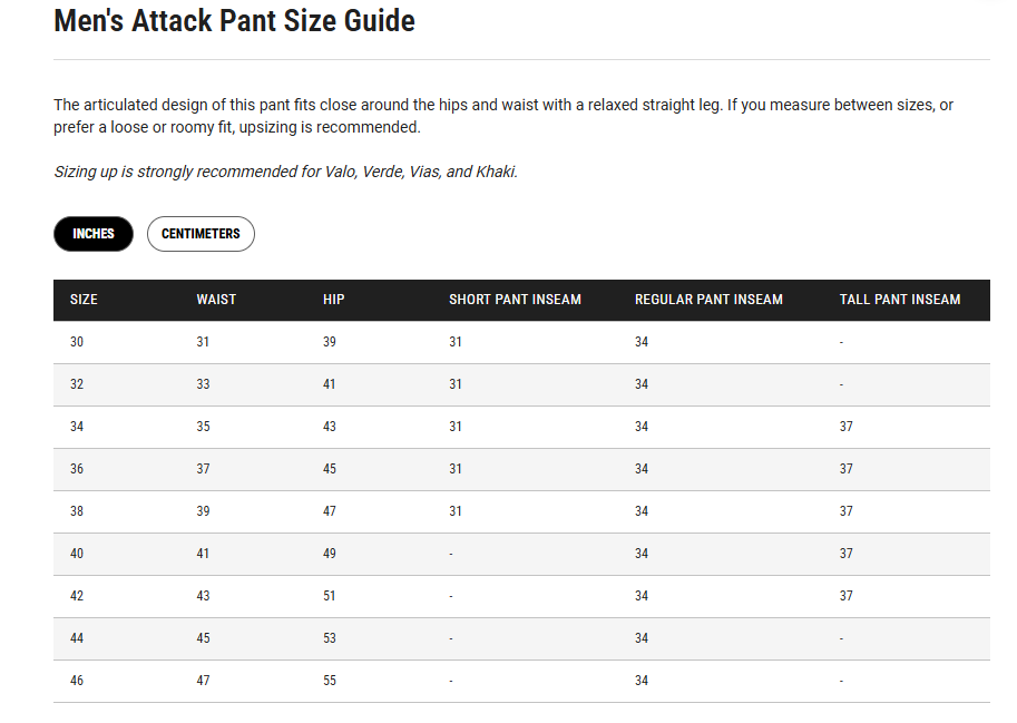 The articulated design of this pant fits close around the hips and waist with a relaxed straight leg. Upsize if you measure between sizes.