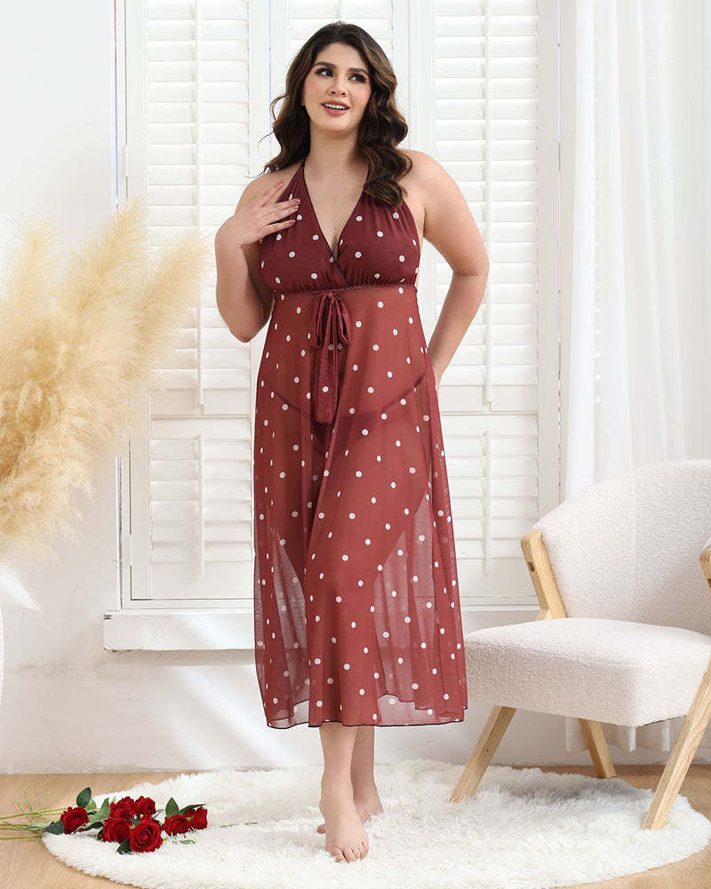 Plus Size Bow Tie Polka Dot Long Dress
