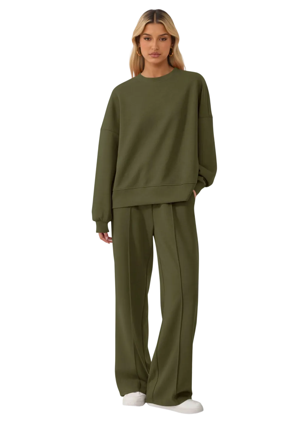 Women's Cozy Round Neck Top & Wide Leg Trousers Two Piece Outfits